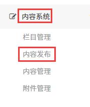 1. 進(jìn)入后臺,點擊左側(cè)菜單欄中的【內(nèi)容系統(tǒng)】,在里面找到并點擊【內(nèi)容發(fā)布】