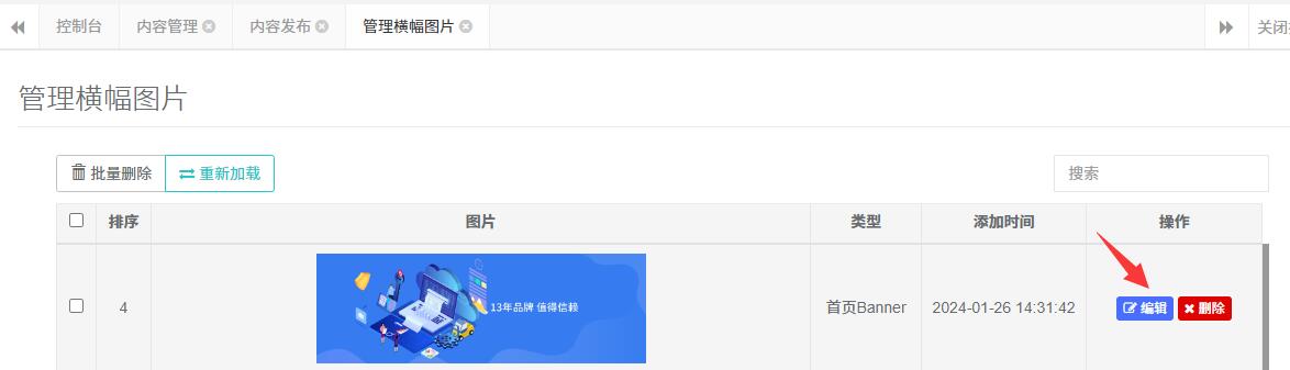 2.在管理橫幅圖片點(diǎn)擊【編輯】